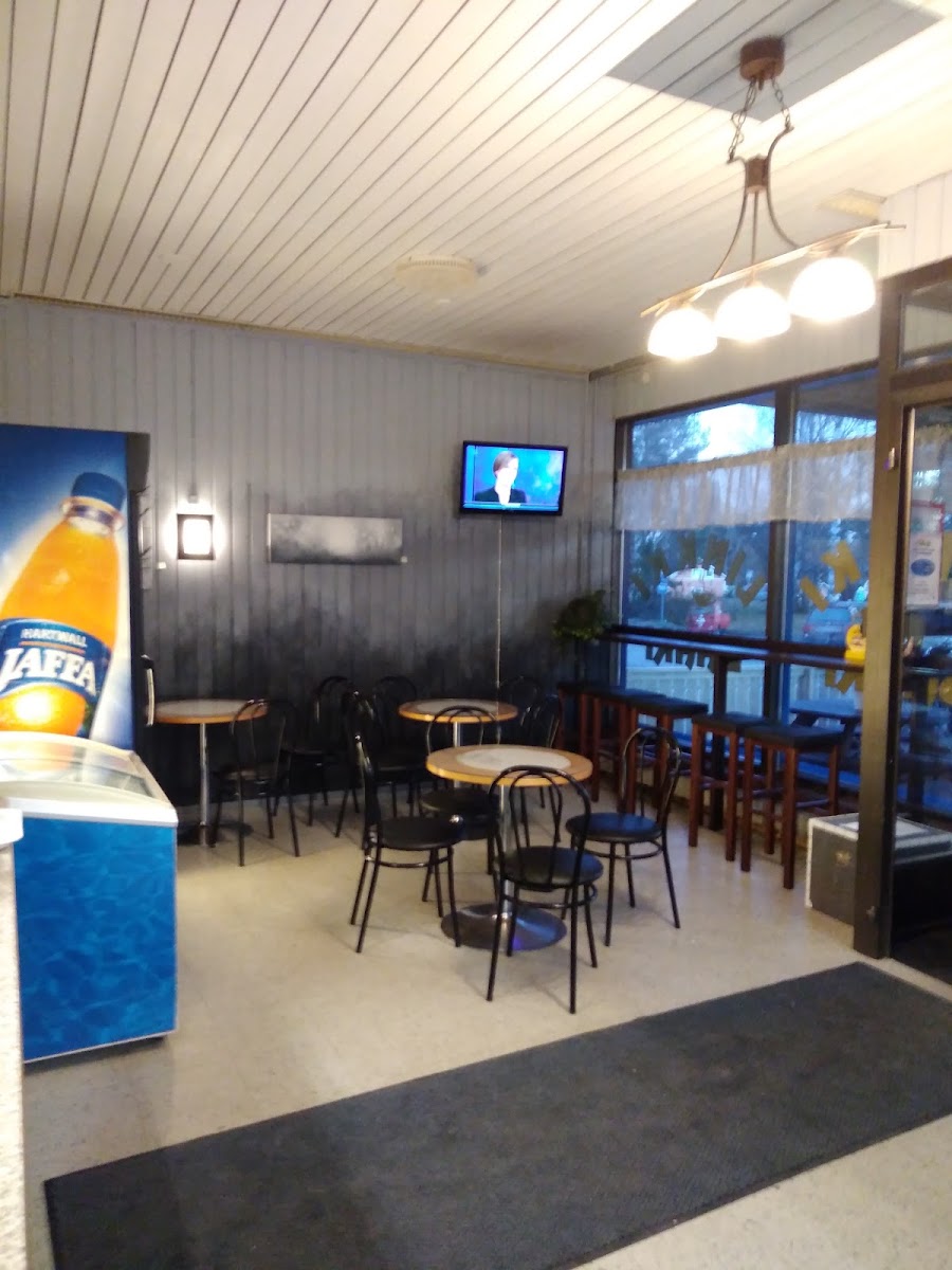 Sieltä löytyy baari/kahvila tarpeet ja matkahuolto.